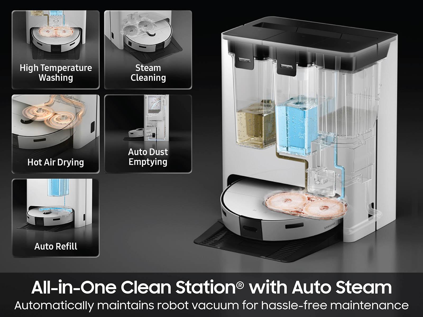 | Hot water wash, adaptive drying, dust compression, detergent dispensing | Steam + hot water wash, heated air drying, auto-refill |