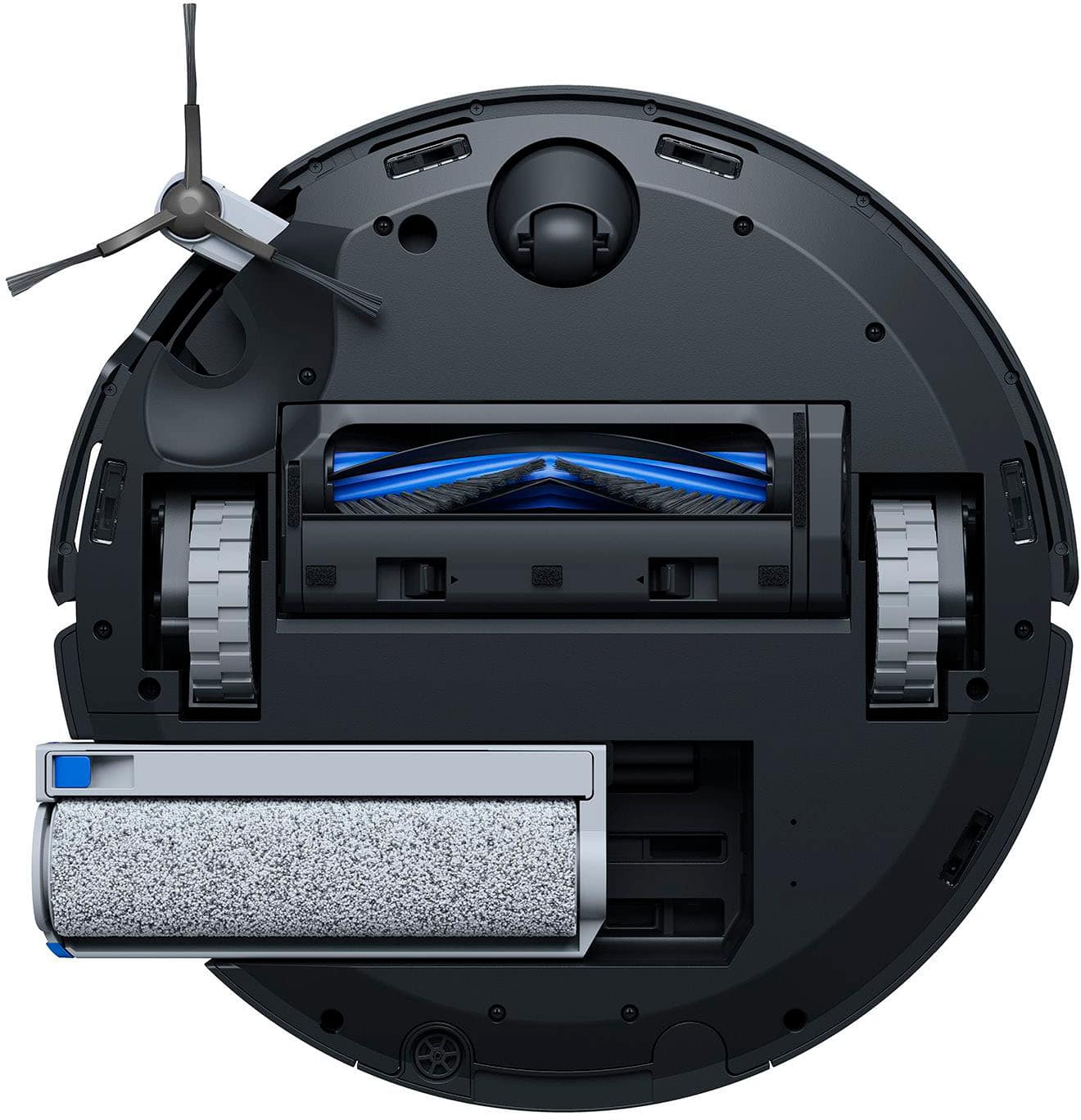 The ECOVACS X8 PRO OMNI features what they call OZMO Roller technology—a completely different approach to mopping. Instead of traditional flat mop pads, it uses a cylindrical roller that spins at 200 RPM while 16 water nozzles continuously rinse it with fresh water. This means the mop is essentially self-cleaning as it works, preventing the cross-contamination that plagues traditional mopping systems where dirty mop pads spread grime around your floors.