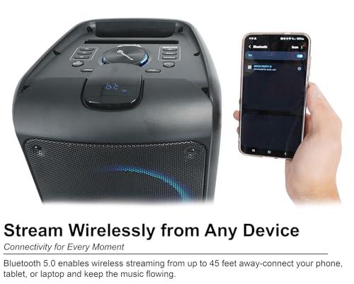 The Rockville Rock Party 9 offers Bluetooth 5.0 with a solid 45-foot range, plus multiple wired inputs including USB ports that can read music files directly from flash drives up to 128GB. This direct USB playback is incredibly convenient for parties where you want to avoid potential Bluetooth dropouts.