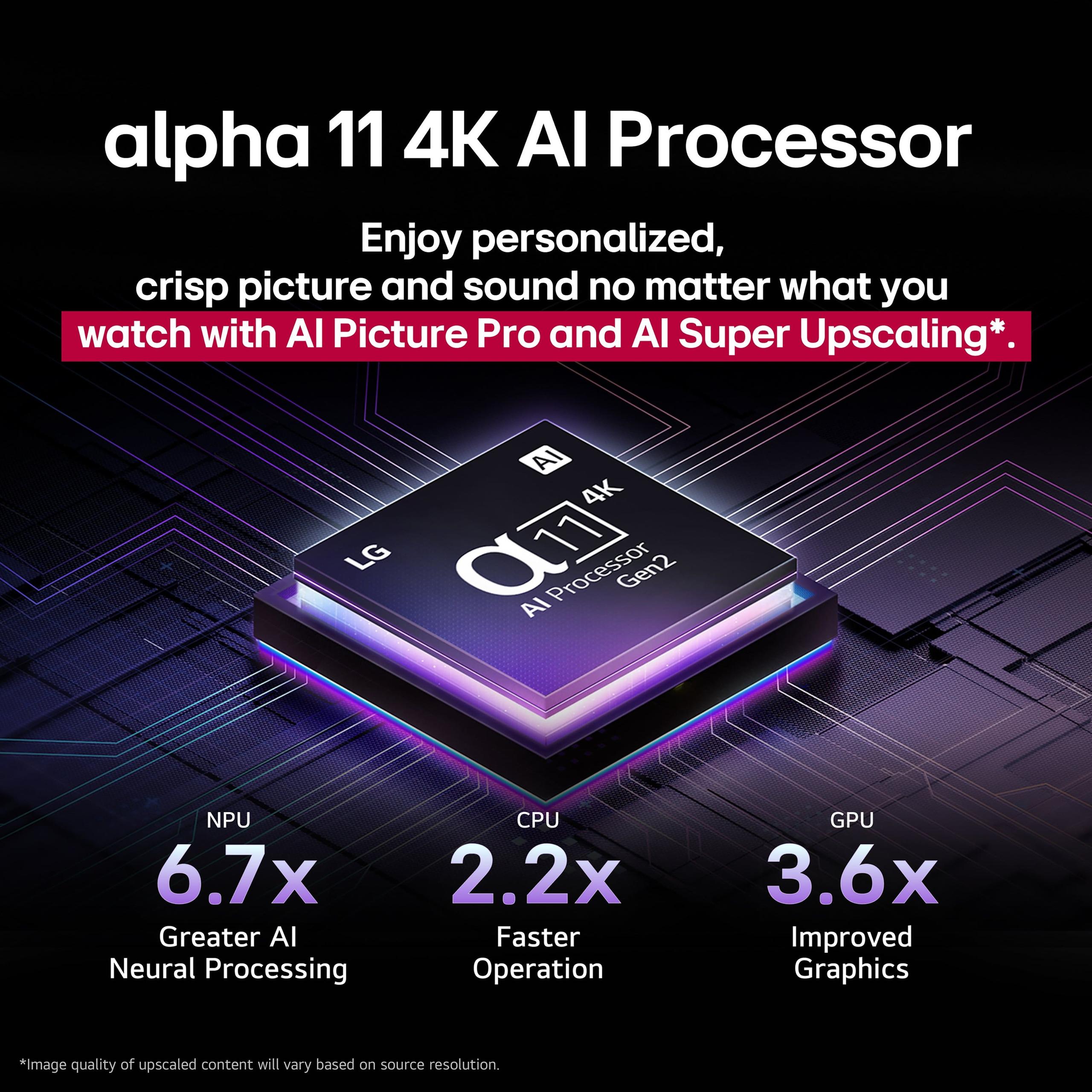 LG's Alpha 11 AI Processor Gen 2 focuses more on personalization, learning your preferences over time. It offers more sophisticated scene-by-scene optimization and can adapt to your viewing habits. The AI Picture/Sound Wizard helps optimize settings for your specific room and preferences.