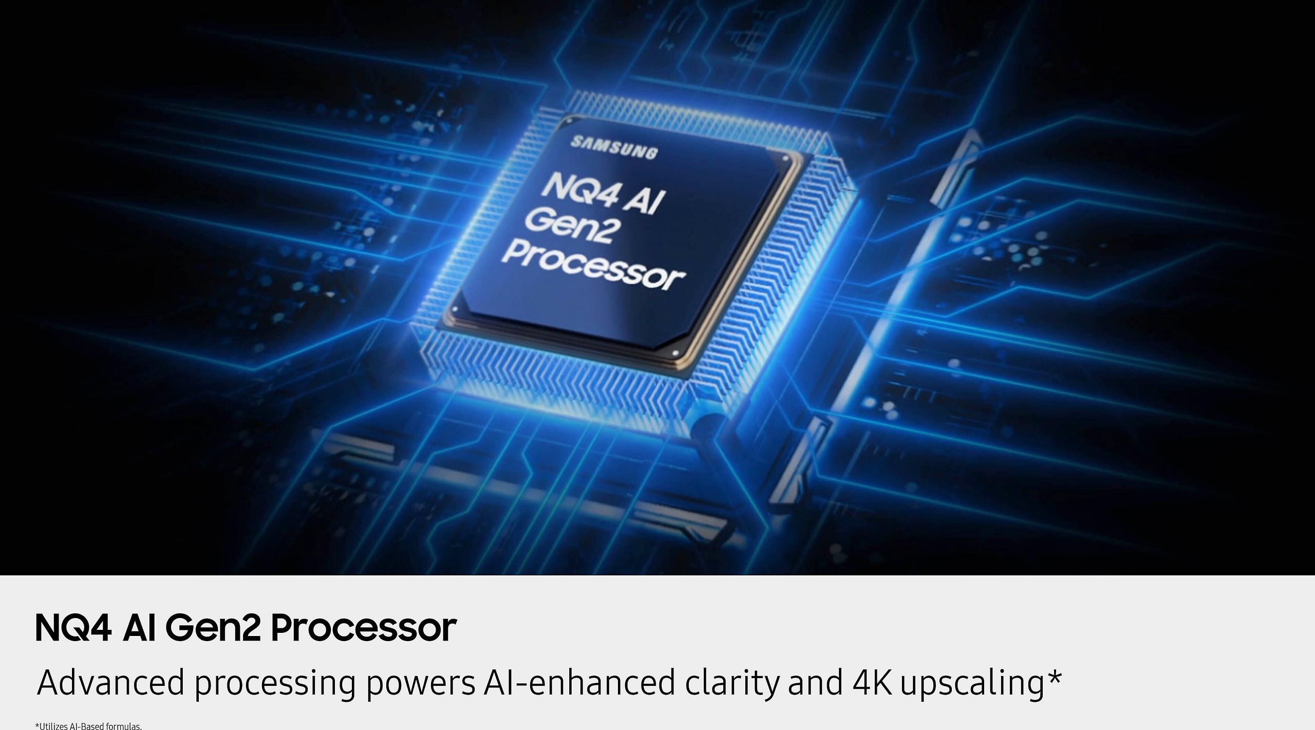 Samsung has equipped these TVs with different generations of their NQ4 AI processor. The Frame Pro features the Gen 3 version – the same chip found in Samsung's flagship models – while the QN70F uses the Gen 2 variant.