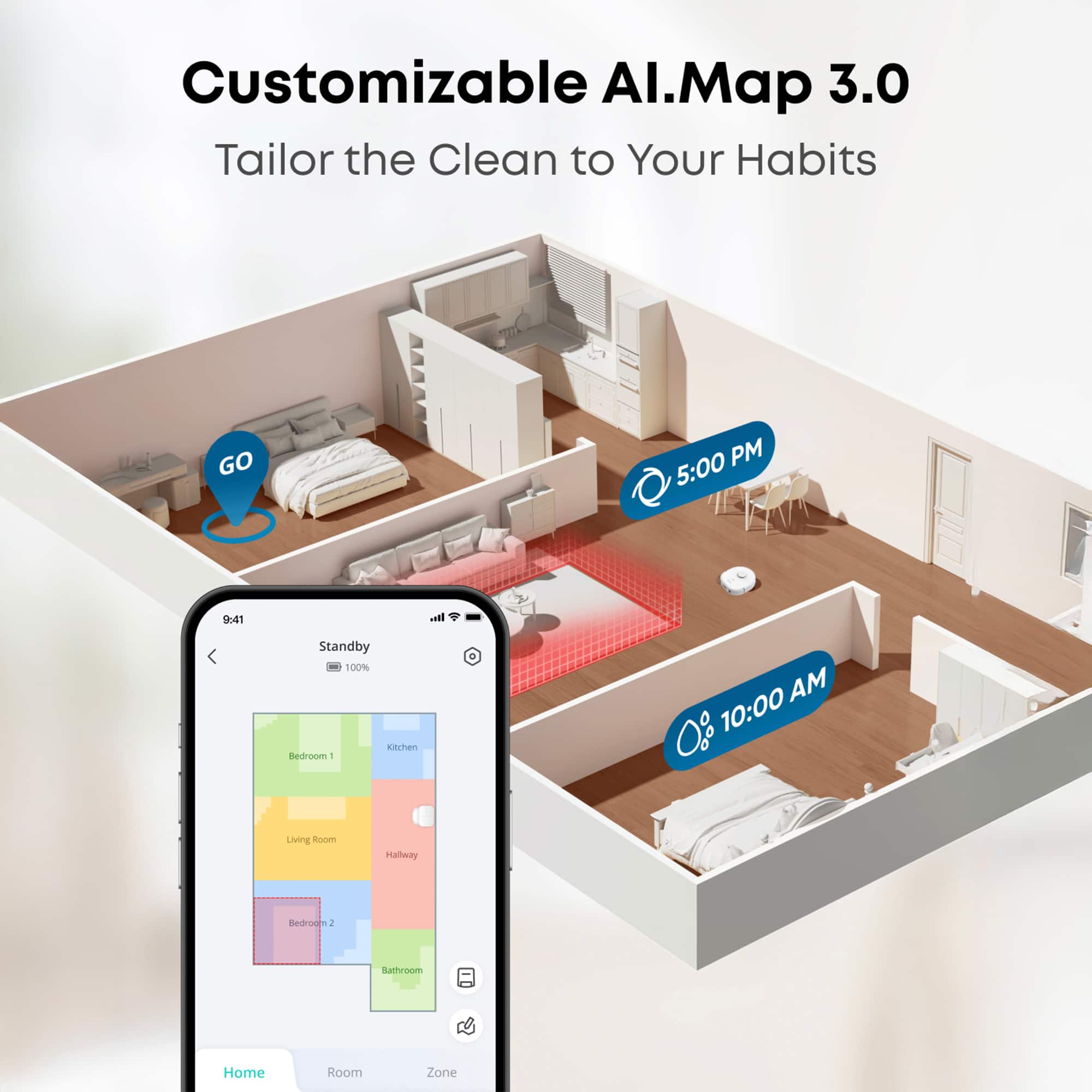 Navigation relies on iPath LiDAR combined with AI.See technology, which uses an RGB camera and on-device AI processing to recognize specific obstacle types like cords, shoes, and pet waste. While less comprehensive than Samsung's multi-sensor approach, it proves effective in practice and works reliably in low-light conditions.