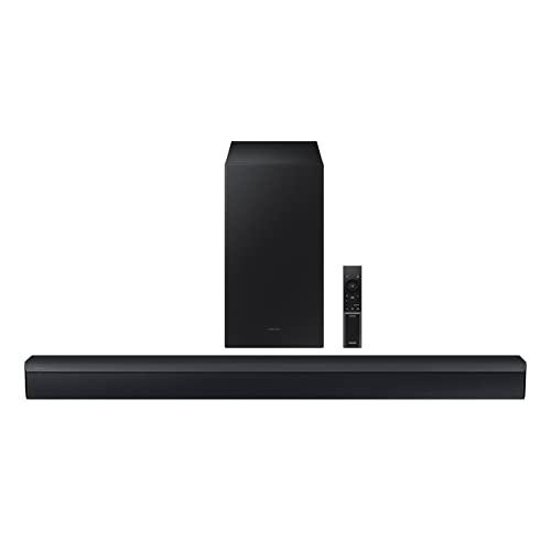 The Samsung HW-C450, released in 2023, represents Samsung's entry-level approach to soundbar design. It's a 2.1-channel system that pairs a compact soundbar with a wireless subwoofer, focusing on simplicity and value. Samsung designed it for users who want better TV audio without complexity or a major financial investment.