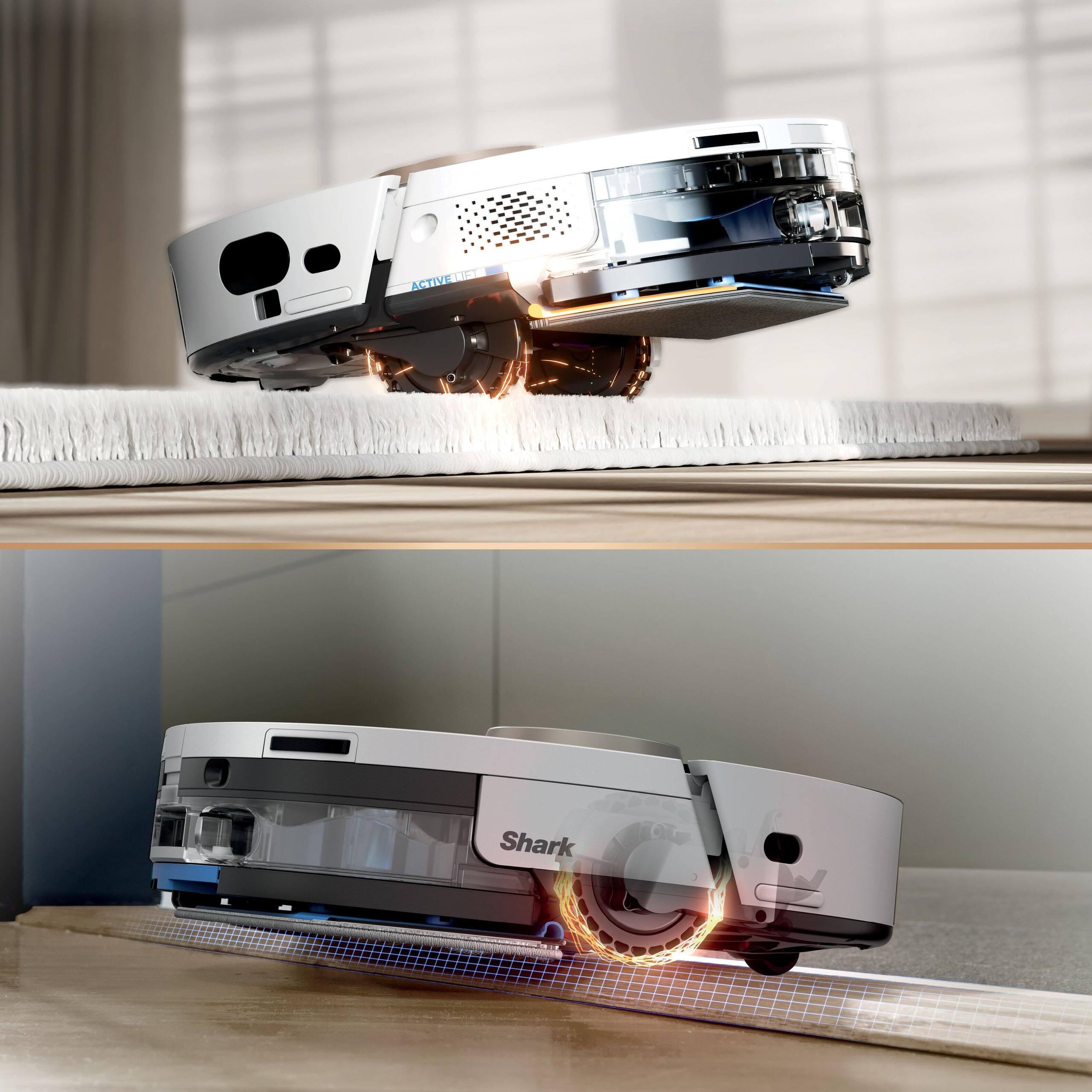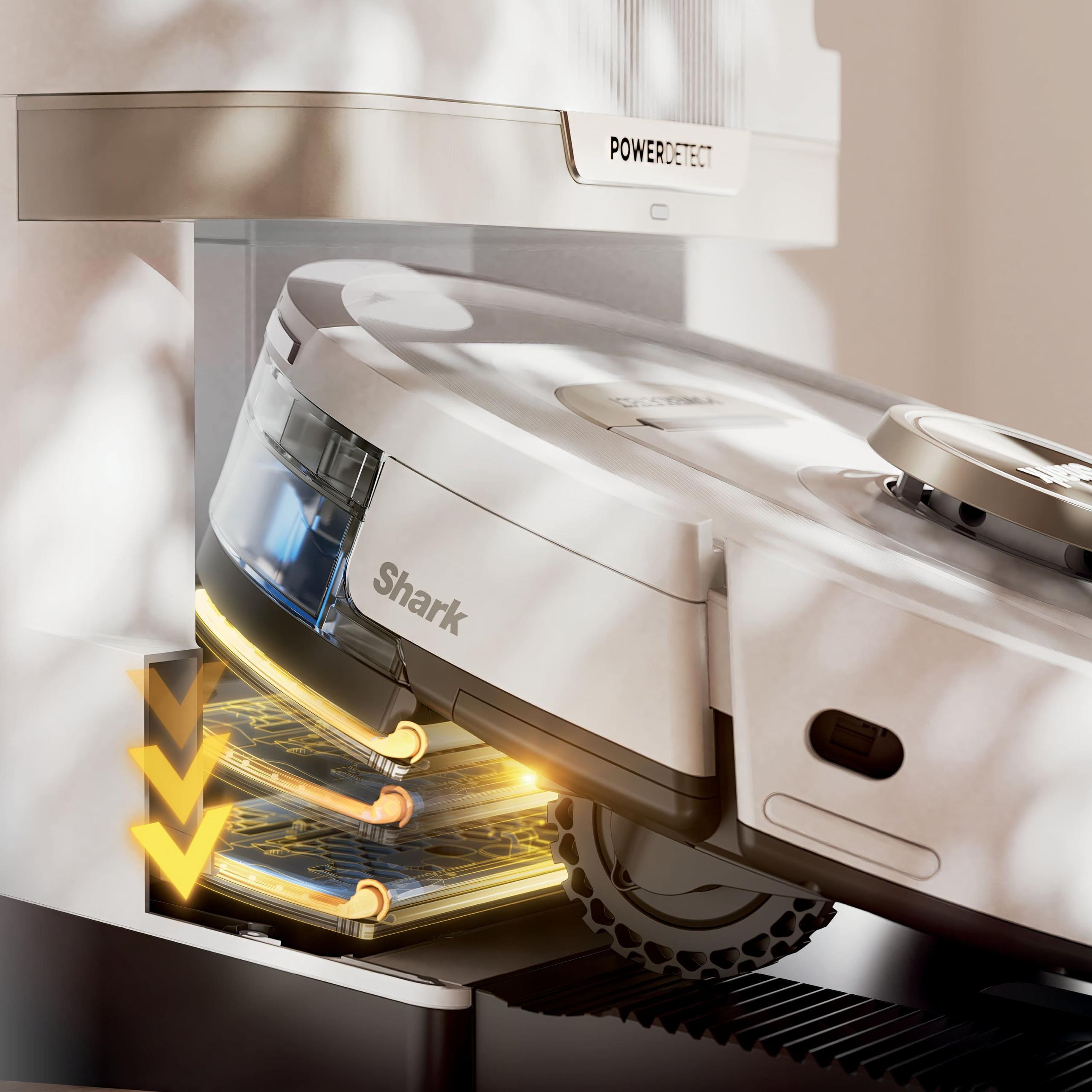 One persistent challenge for robot vacuums is cleaning along walls and in corners where debris tends to accumulate. The Shark PowerDetect addresses this with EdgeDetect™ technology, which uses targeted air blasts to push debris from edges into the vacuum's cleaning path. Additionally, the mop pad can extend beyond the robot's circular footprint to reach closer to walls – a clever mechanical solution to a geometry problem.