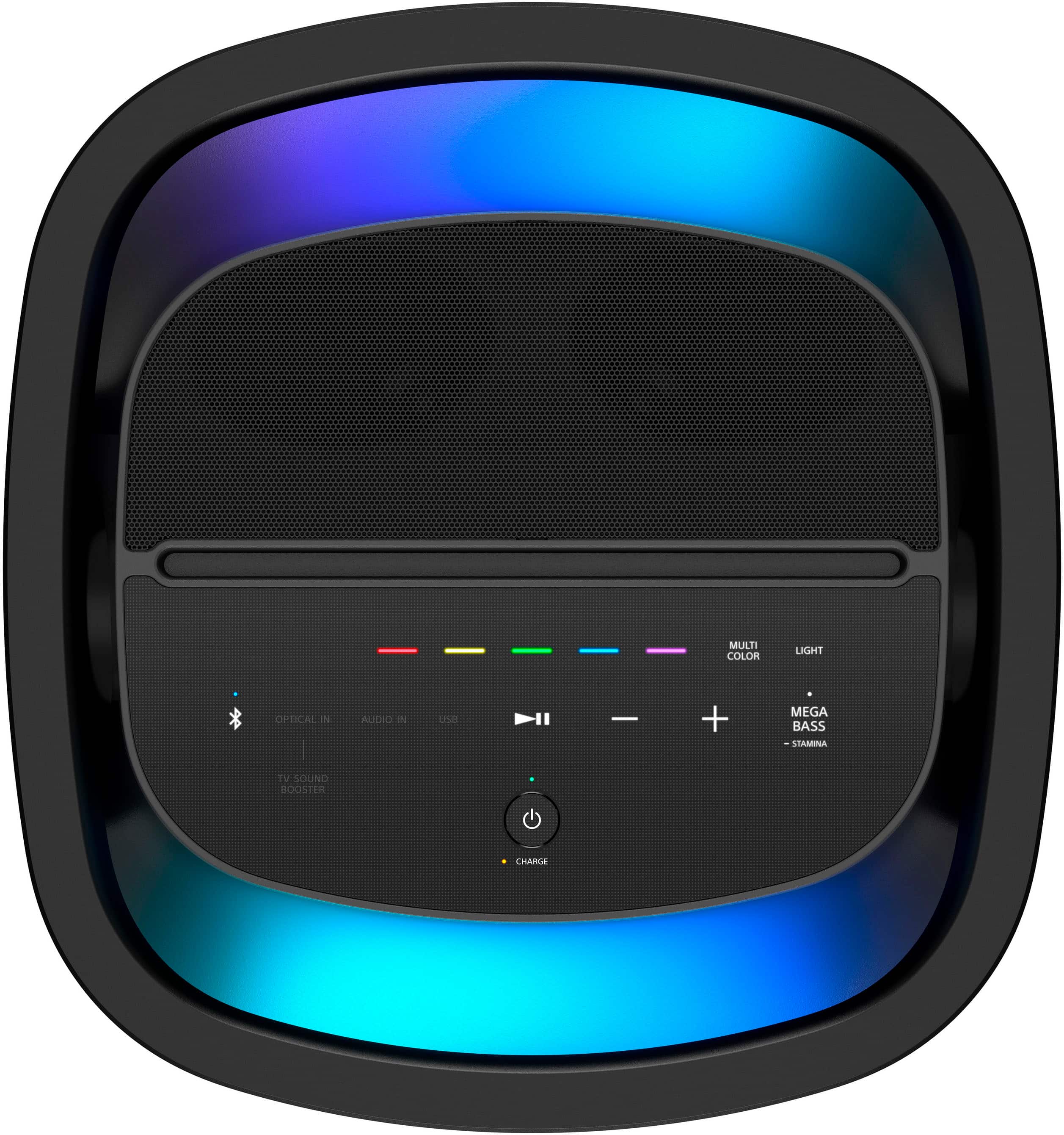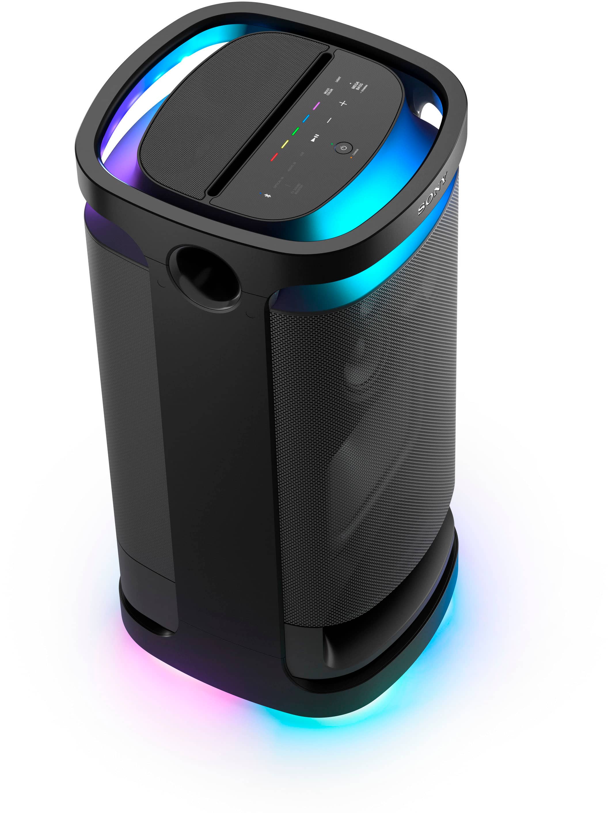 The Sony SRS-XV900 takes a more sophisticated approach to lighting with 360-degree LED rings that provide ambient lighting effects. While not as customizable as Samsung's system, Sony's lighting is more integrated into the overall design aesthetic.
