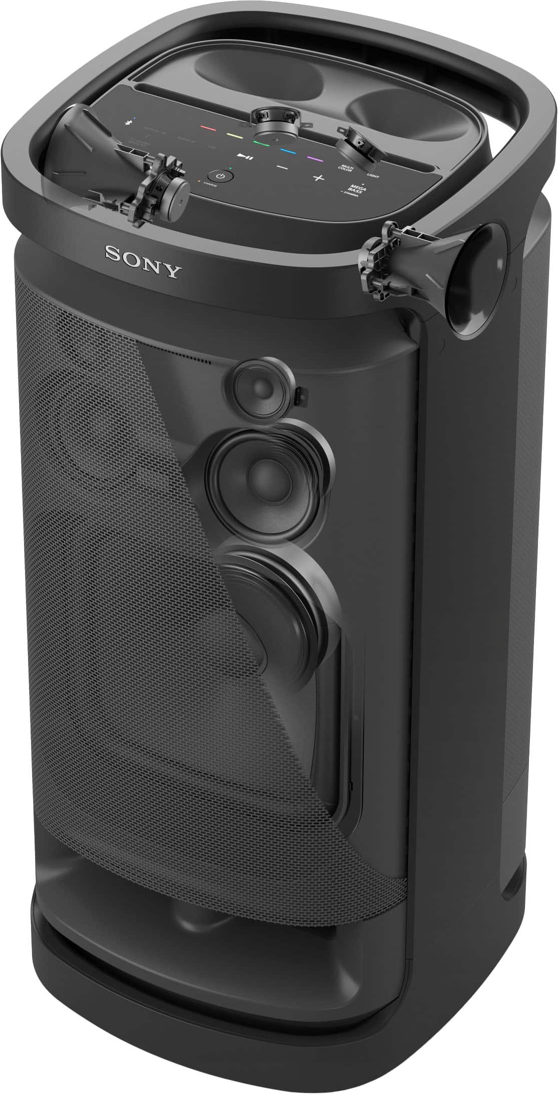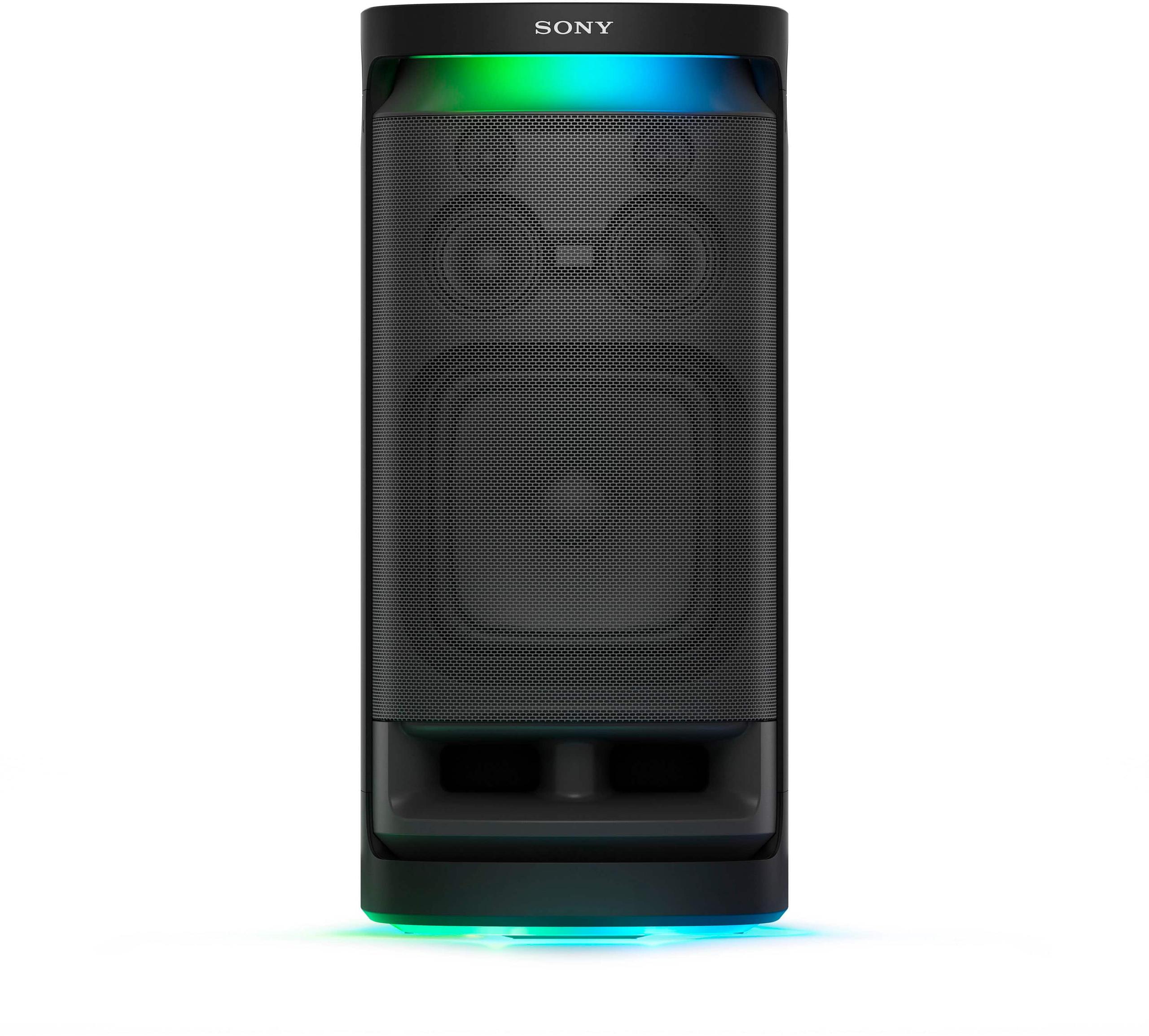 The Sony SRS-XV900, released in 2022, represents Sony's flagship approach to portable party audio. At the time of writing, it commands a premium price point that puts it in competition with high-end models from JBL and other established brands. This speaker is what you'd call "semi-portable"—it has wheels and handles, but moving it around is definitely a two-person job.