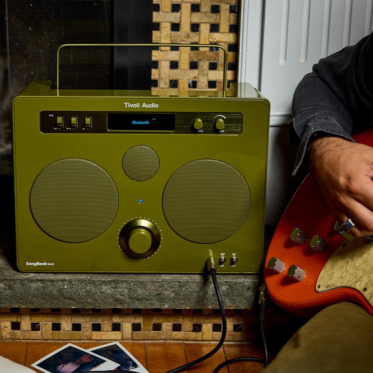 The Tivoli Audio SongBook MAX features a unique built-in preamp with a 1/4" input specifically designed for connecting guitars, keyboards, or turntables directly to the speaker. The JBL PartyBox Ultimate also has instrument connectivity with guitar and dual microphone inputs, plus more comprehensive DJ and live performance features.