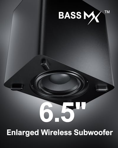 | 6.5" wireless subwoofer with BassMX technology | Dual 4" integrated woofers in soundbar |