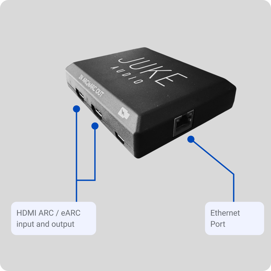 At its core, this is a network-based audio bridge. It takes local audio sources — a TV via HDMI eARC, a turntable, a subwoofer, legacy receivers, CD players — and presents them as inputs within a Juke multi-room audio system, entirely wirelessly over your local network. No wall runs. No rack (Major anyway) infrastructure. No dealer-only software.