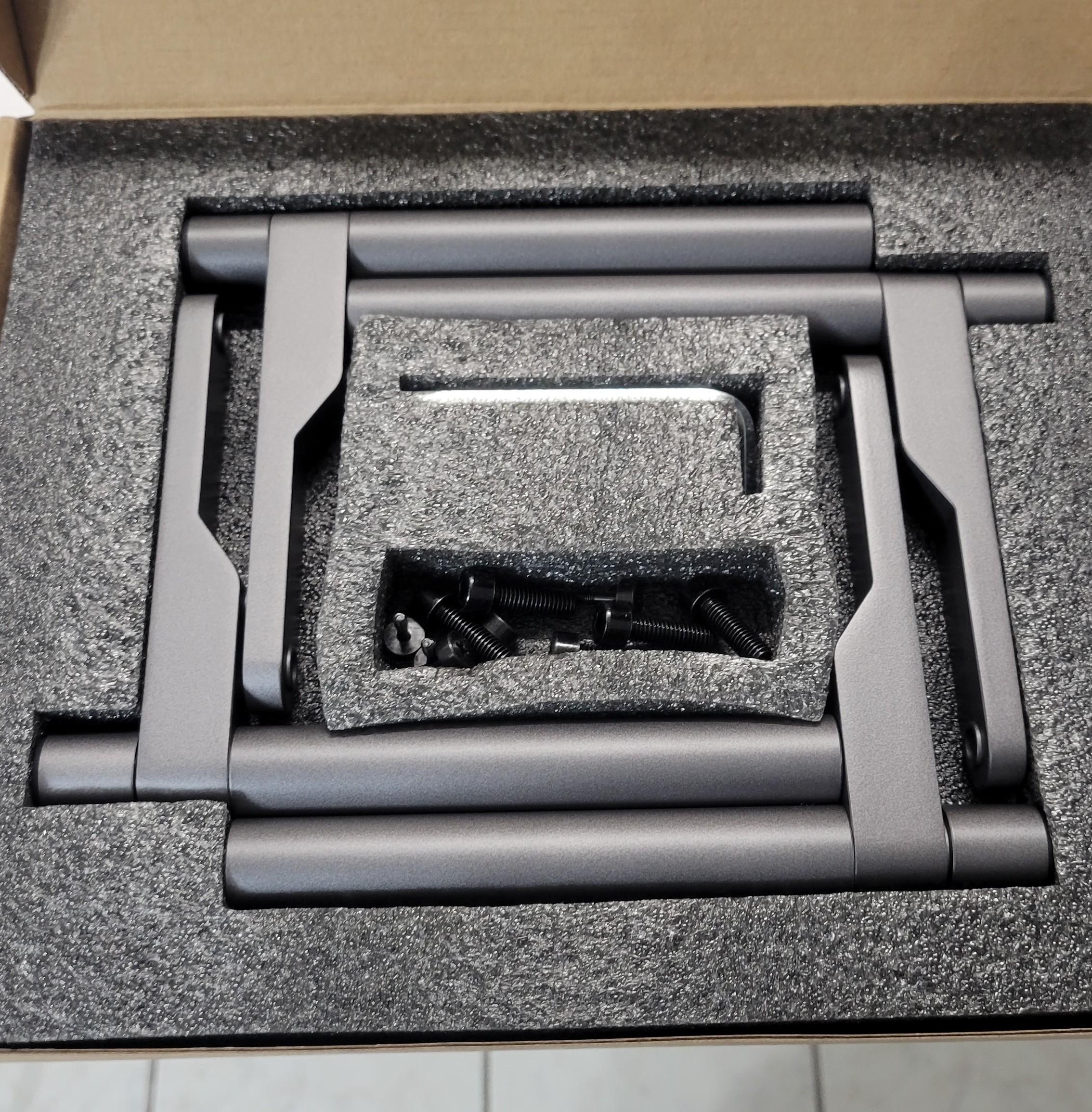 The Titan screams “commercial grade” from every angle. Gone are the fabric grilles and rounded, friendly corners of the Horizon Ultra (priced at $1,699 at ProjectorScreen). In their place is a large, rectangular chassis clad in dark surfaces with faux leather accents that manage to look purposeful rather than decorative. The four sturdy metal feet elevate the unit slightly off the surface, ensuring excellent stability on a shelf, though they’re removable for ceiling installations. At 25.3 lbs, you’ll want a partner for the install—this is a two-person lift onto any serious mount.